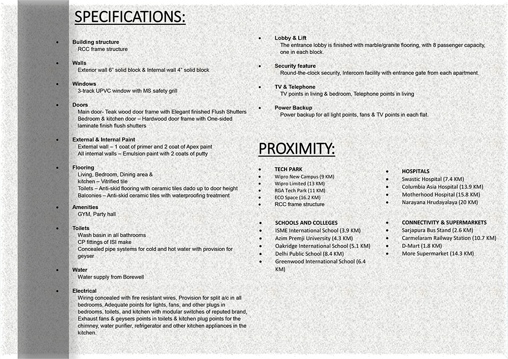 Enjoy seamless access to major hubs like Wipro Campus, ISME International School, and Sarjapura Bus Stand – all within minutes from your doorstep.